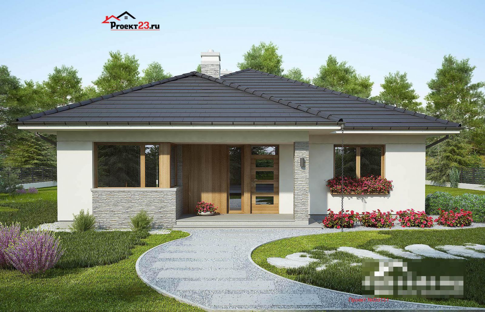 Đây là một bản thiết kế nhà 1 tầng 2 phòng ngủ hiện đại phù hợp với những gia đình nông thôn có mặt tiền rộng. Sử dụng màu sơn trung tính xám và trắng rất hài hòa, mang tới hơi thở vô cùng hiện đại. Cùng đó là phần mái nhà sử dụng gạch màu tối đối lập nhằm tạo sự nổi bật và có điểm nhấn.