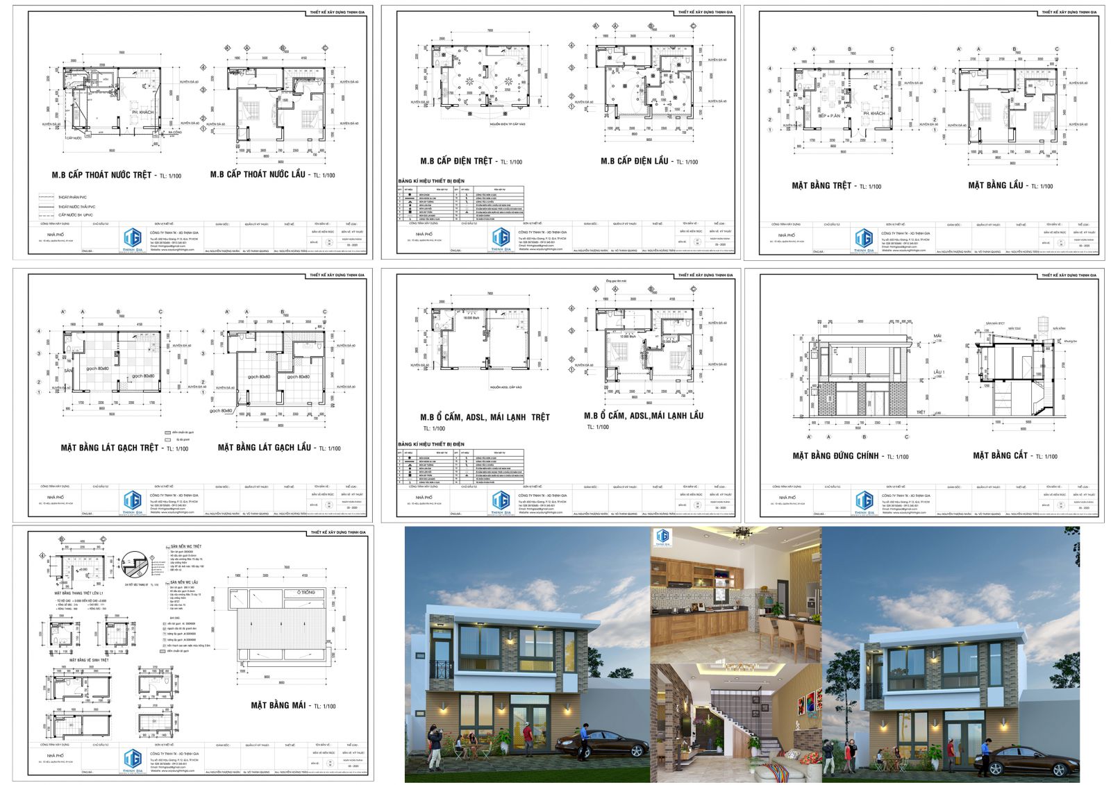 Nhà phố: 60.000đ/m2 đến 80.000đ/m2 ( kiến trúc - kết cấu- điện -nước- phối cảnh mặt tiền )