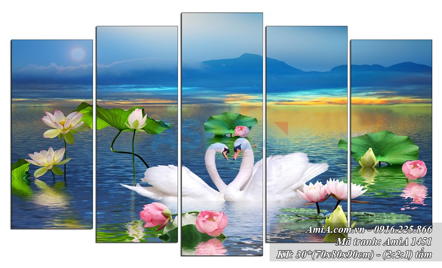 Tranh uyên ương: Phòng ngủ thường dành cho các cặp đôi bạn có thể treo bức tranh uyên ương vui vẻ bên nhau tạo không gian bình yên hạnh phúc cho gia đình của mình.