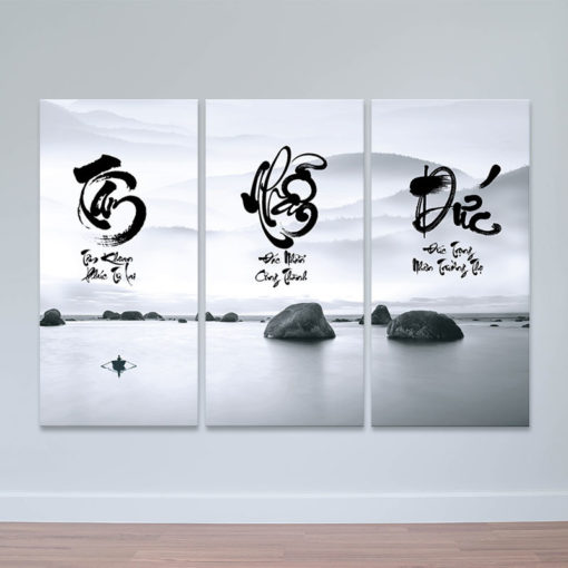 Tranh sơn thủy,quê hương tươi đẹp: Một bức tranh sông núi, cảnh quê hương bình yên với cánh đồng bát ngát cũng sẽ tạo sự bình yên, êm đềm cho không gian trong phòng ngủ của bạn.